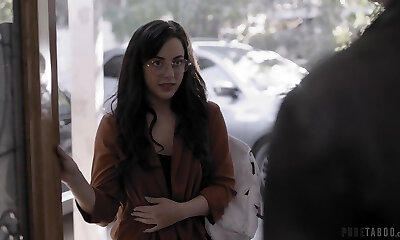 Ardent pale gal gets lured and fucked by lewd black owner of the building