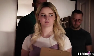 Playful redhead stepsister properly Dp'd by two horny bulls in loud three