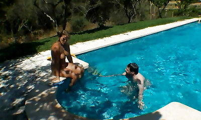 Tanned towheaded Christen Courtney enjoys having passionate hump by the pool side