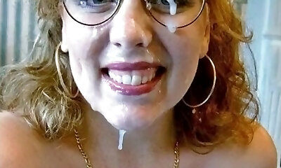 Sultry mature wifey swallowing cum after giving hot blowjob
