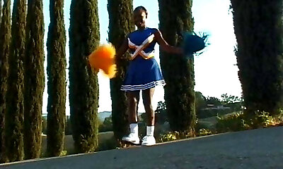 After ravaging a dark-hued guy, a plump cheerleader gets it on with a white one