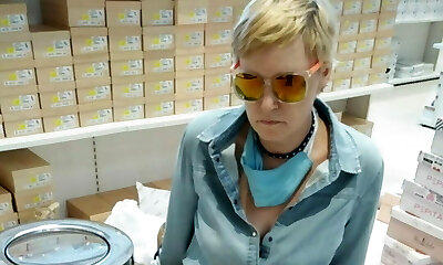 HIdden cam of hot granny assistant in the office