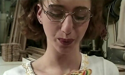 Nerdy chick gets her glasses splattered with explosions of sticky jizz
