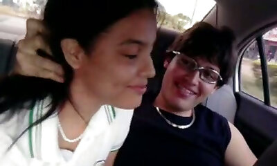 Horny duo plumbs in Uber car with large culo and inborn