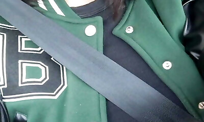 Horny Educator in leggings masturbates inside her truck while stuck in traffic