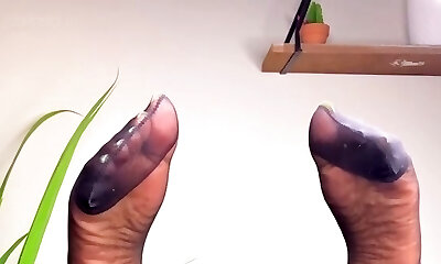 Lil nurse's black pantyhose foot sex, ejaculating in her pantyhose