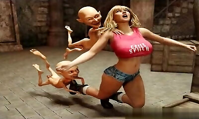 Dwarf (Sara One) makes a suck off to an astronaut (Andrea Dipre)!