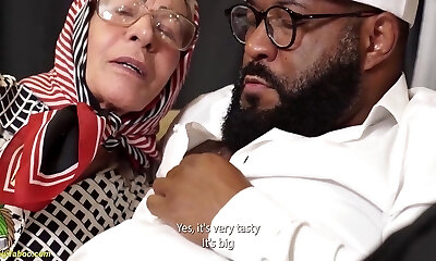 Grandmother rides black cock