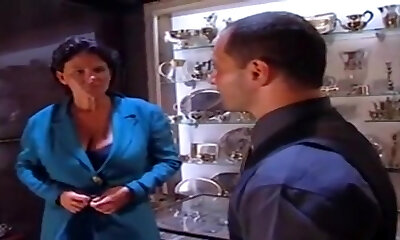 Big-chested mature black-haired Lara seduces a stranger with her huge boobs