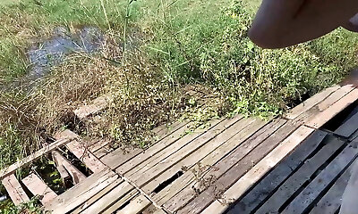 Real outdoor sex picnic with a warm petite brown-haired on a summer vaca in nature next to the road