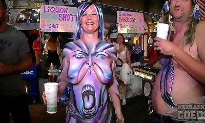 Beautiful Festival Gals Exposing Their Skin Halloween Street Party Fa