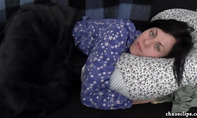 Sleepy Girlfriend in Pajamas Frolicking with Nipples