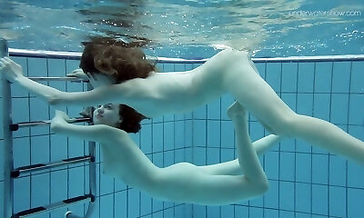 Cute teen damsel Anna Netrebko swims naked with her GF