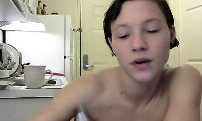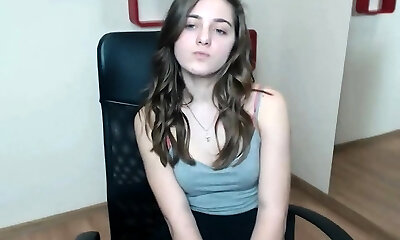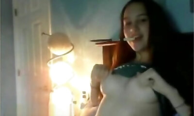 19 year aged busty webcam girl with innocent face touches her big natural ti